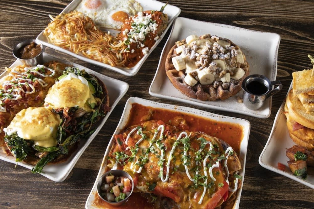 Enjoy classic Mexican and southwestern flavors crafted into lavish dishes at Posada. Avocado toast topped with shrimp, steak tacos covered in gravy, garnished with vegetables, and churros on a white plate painted with chocolate are just a few of the fares you’ll soon be drooling over.